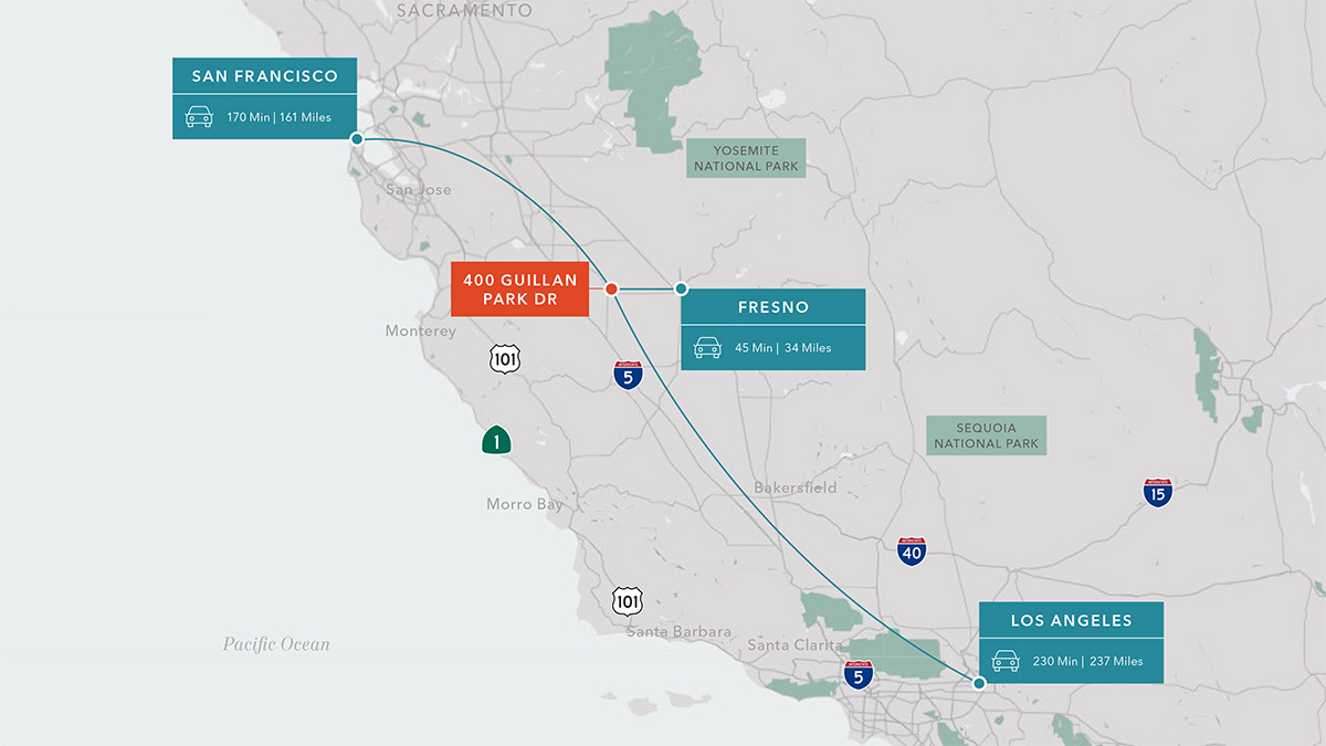 Near Fresno, I-5, and key agricultural processing corridors. Excellent truck-route access to SR-180/SR-33.